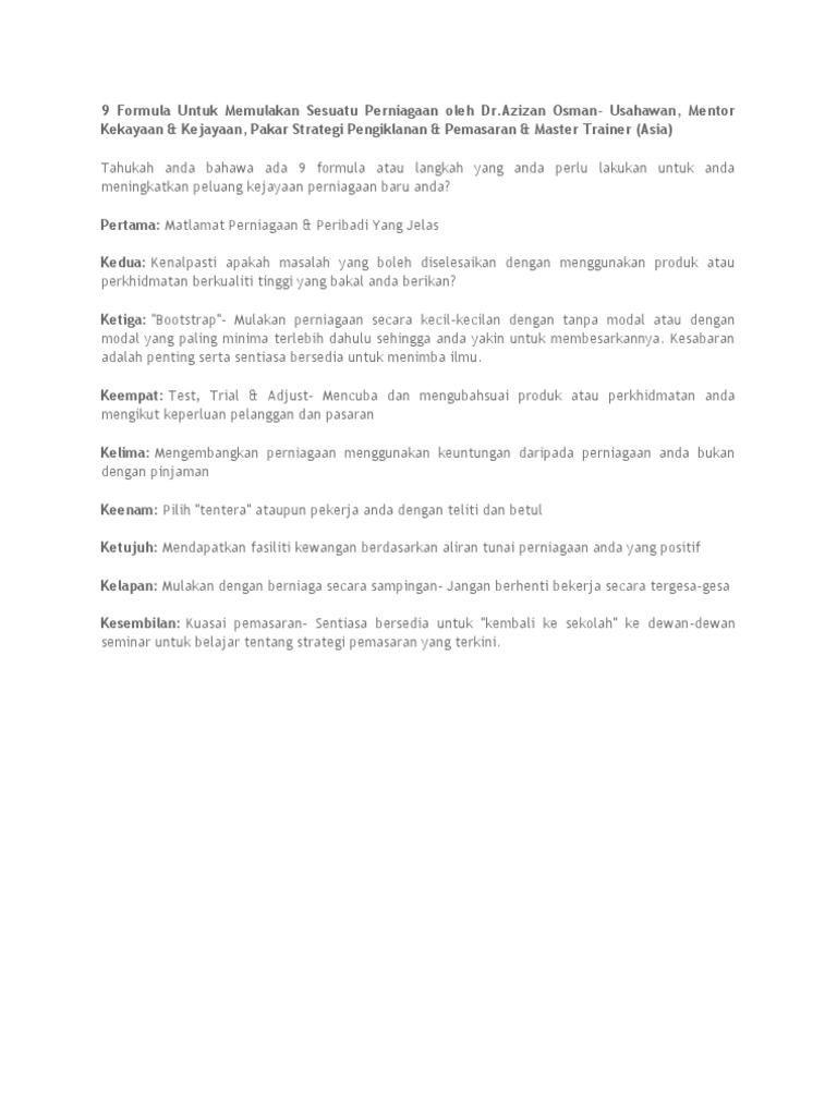 10 tips untuk memulakan perniagaan sendiri. Mencari idea bisnes untuk tahun 2020 ? Atau lebih praktikal memilih pembiayaan perniagaan untuk perniagaan anda? Produk yang dihasilkan selalunya boleh dilakukan daripada rumah tanpa perlu ruang. Anda memulakan perniagaan anda sendiri?
